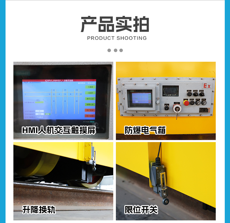 纵横移动轨道车,十字交叉路口自动切换行进方向,一键升降换轨,突破平面轨道路线限制,走到换轨点自动停靠不用人工反复对位调整,无线遥控一键换轨,瞬间完成横向变换。300ah大电池全天续航无忧,台面升降150mm精准对接平台落差,防爆电控、雷达避障、限位开关,重载10吨也能稳稳当当!