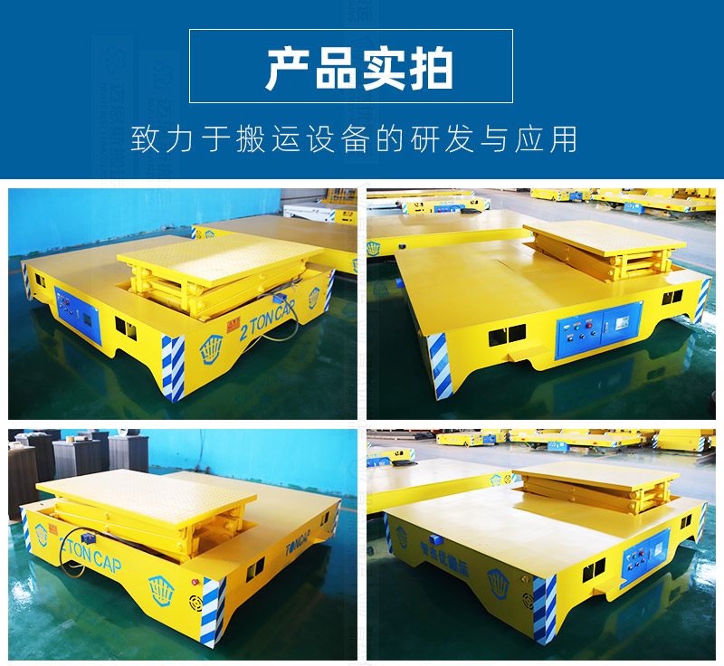 这是一台智杰优自动化搬运设备,长2.5米宽2.2米高0.5米的RGV轨道式自动升降搬运车,底盘钢板箱形结构梁载重能力强可承受2吨的重物,选用强度较高的锻打铸钢车轮结实耐用使用时间长,电缆交流供电可持续不间断作业,剪叉机械结构升降,升降高度可达2.5米;电气自动化程度高,支持多种通信协议兼容性范围广可远程微机调度控制,同时也支持人工无线远程遥控RGV轨道车行走、升降,作业时防护装置齐全,光电探头实时检测遇到障碍自动停车,声光一起时刻警示提醒周围人员注意避让,断电自动刹车防止停电溜车发生,到达地点自动缓慢停车避免急停产生惯性时事故发生。智杰优专注自动化设备搬运,咨询我,了解更多产品。